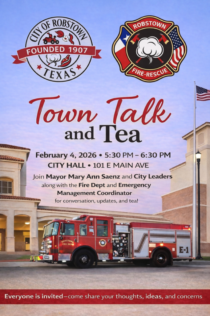 You can follow the City of Robstown on Facebook at: